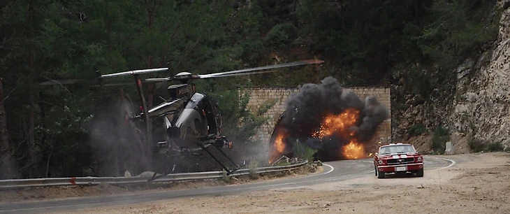 Или же взять финальную драку, на которую приходит герой Хью Гранта. Он садится перед бандитами, толкает впечатляющую речь, а за спиной все эффектно взрывается. Шикарное, пусть и бессмысленное зрелище.