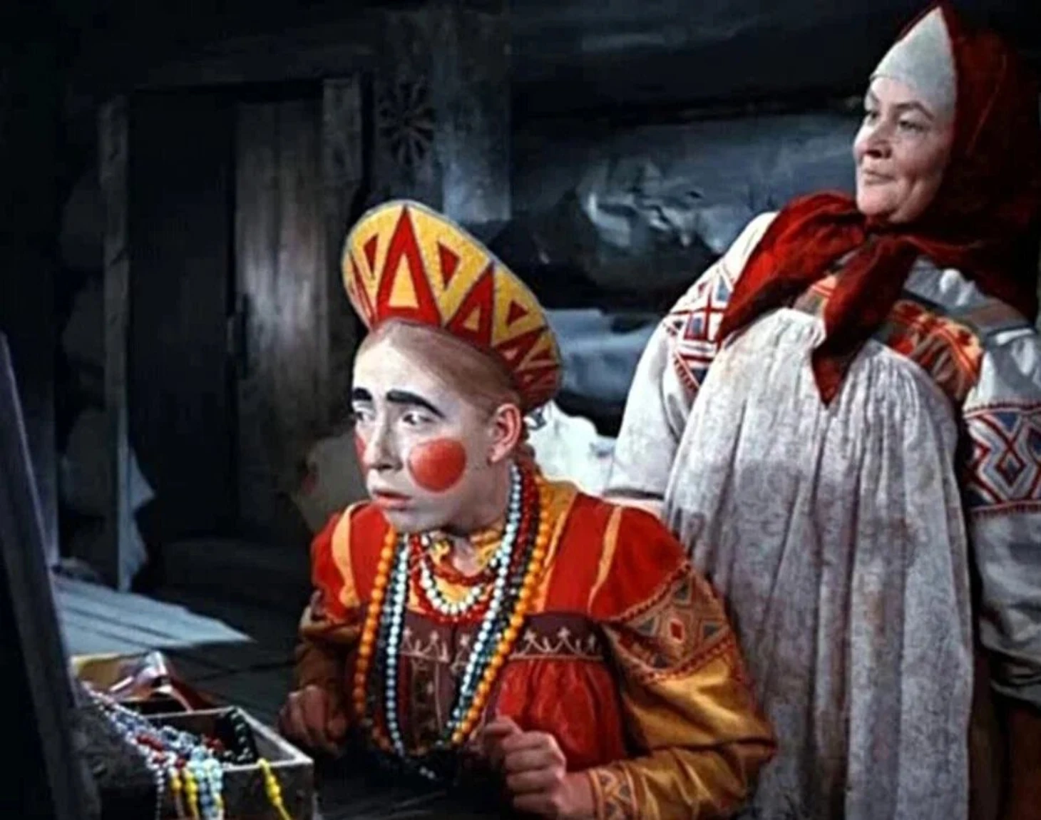 А помните, как Марфушенька с упоением ела яблоки в ожидании Морозко? Это не яблоки. Чуриковой дали лук: где-то пишут, что яблоки не смогли купить из-за дефицита продуктов, где-то, что фрукты просто забыли в гостинице. И все же в кадре действительно лук – его подкрасили пищевым красителем.