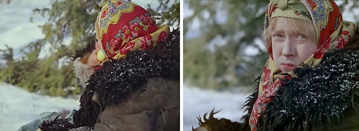 Марфушенька искренне жаловалась на холод волшебнику. Большую часть фильма снимали среди елей и сугробов Кольского полуострова, а на эту сцену опоздал осветитель. Так что Чурикова и правда едва не окоченела в 30-градусный мороз.