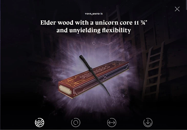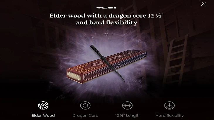 После создания учетной записи вы можете попытать удачу в викторине и получить Бузинную палочку. Теперь вы можете нажать на кнопку «+», находящуюся над «Wand» под вашим портретом или иконкой учетной записи. После этого перейдите по надписи «Find Your Wand» на страницу с вопросами. В тесте будет всего 7 вопросов. По прохождении тестирования вас перенаправит на главную страницу сайта.