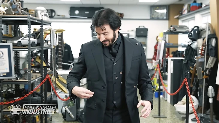 Оказалось, пиджак реален. Это доказали блогеры с YouTube-канала Hacksmith Industries. Они и раньше воплощали оригинальные идеи из фильмов и игр: создавали световые мечи, бэтаранги и броню Мастера Чифа. А теперь добрались до девайсов Джона Уика.