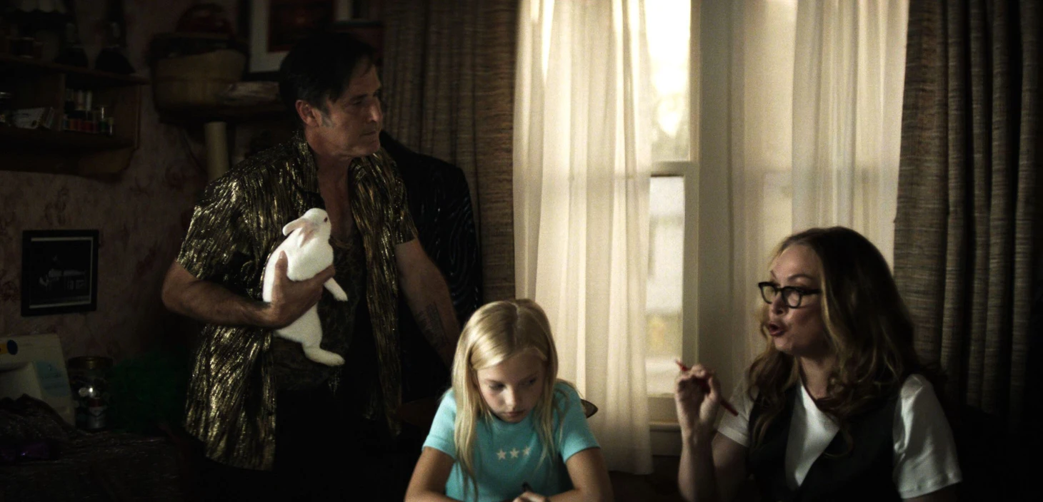 Сериал абсурден с первой минуты. Ну какая клубника в пустыне Невады? Что вообще происходит и зачем уже в первой серии столько информации и героев? Но постепенно мы прозреваем: каждая серия начинается с долгого пролога, который знакомит с периодом жизни одного из ключевых персонажей. Мы побываем в детстве Симоны, которую раньше звали Лиззи. Девочка жила в необычной семье фокусников, где почти не обращали на нее внимания. Родители вечно собачились, а ребенка использовали как защиту. Она даже получила стрелу в печень – настолько ее мать не хотела, чтобы кто-то попал в секретную комнату!