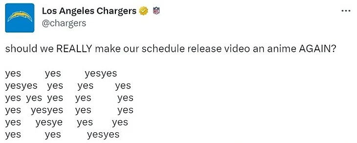 «Чарджерс» – команда по американскому футболу, известная любовью к аниме. В 2022-м она выпустила забавный мультяшный ролик c расписанием ближайших игр. Он собрал на YouTube почти миллион просмотров, породил сотни статей с разбором отсылок и стал главным мемом сезона. В этом году «Чарджерс» повторила шутку. Какие отсылки появились в видео?