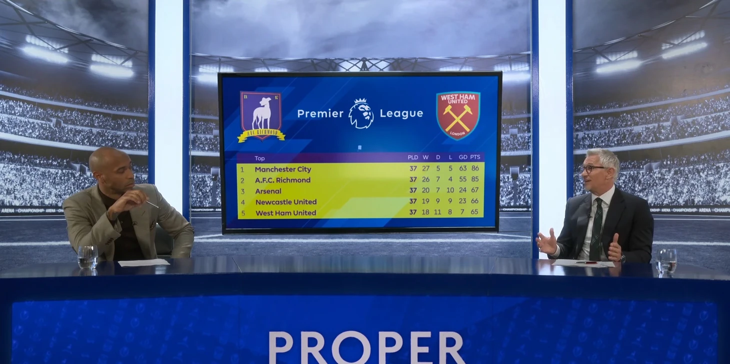 К ответной игре против «Вест Хэма» «Ричмонд» проникся тотальным футболом и набрал феноменальную форму – 16 побед подряд. Не устоял даже Пеп Гвардиола: голы Колина Хьюза и травмированного Джейми Тартта помогли обыграть «горожан» со счетом 2:0. Для чемпионства «Ричмонду» требовалась победа у «Вест Хэма» и осечка «Ман Сити».