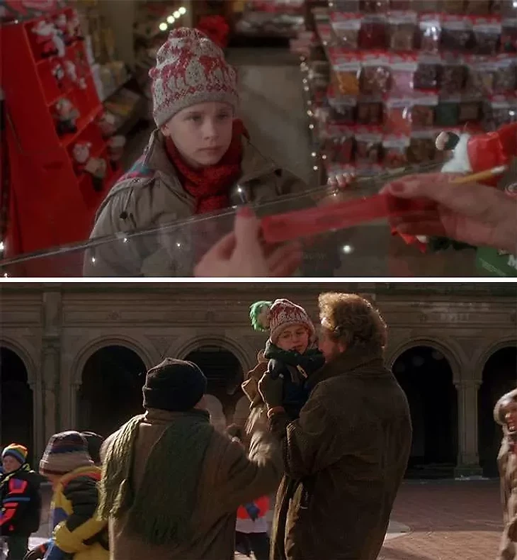 13. В Нью-Йорке Марв решает, что поймал Кевина. Не только из-за внешнего сходства. У мальчика такая же шапка.