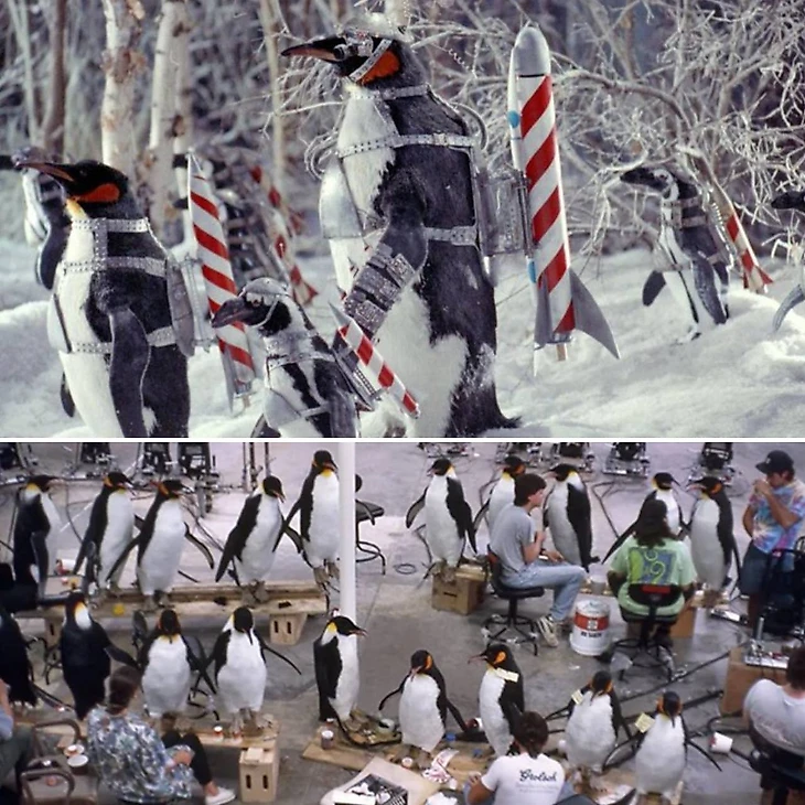 32) Команда Стэна Уинстона создала механических пингвинов. Однажды после съемочного дня сотрудники собирали механических пингвинов и заметили, как в толпе макетов затесался один из живых пингвинов – он прижался к механическому собрату и дремал.