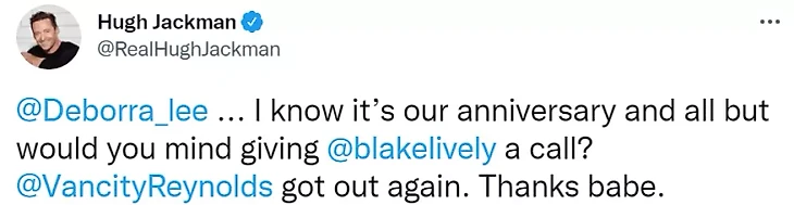 Джекман просил жену позвонить девушке Рейнольдса: «Понимаю, что у нас годовщина. Но тут снова вылез Райан».