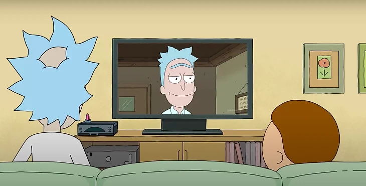 Сезон 1, эпизод 8. Рик подключает межвселенское телевидение и позволяет всей семье смотреть контент из мультивселенной;