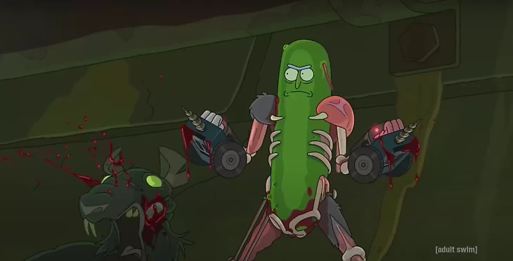 Огурчик Рик. В третьей серии третьего сезона Рик превратил себя в огурец, чтобы избежать семейной терапии. Он должен был превратиться обратно в человека, когда семья уйдет на сеанс, но все пошло не по плану – в итоге безобидное превращение в обычный огурец привело к противостоянию Рика-огурца с русской мафией.
