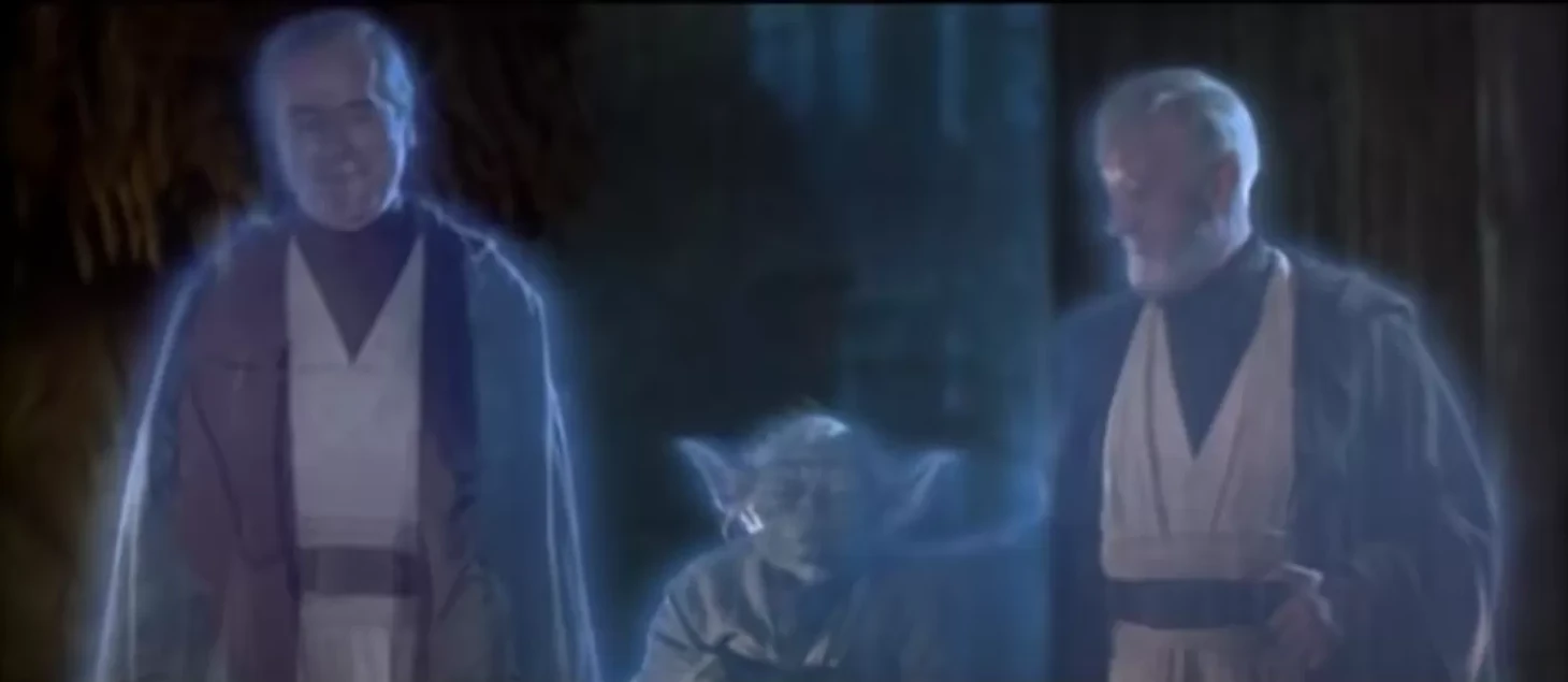 Духи магистра Йоды, Оби-Вана Кеноби и Энакина Скайуокера появляются в финальных кадрах фильма. В оригинале Энакина играет Себастьян Шоу, сыгравший в этом же фильме Дарта Вейдера, но в 2004 году его место занял Хайден Кристинсен.