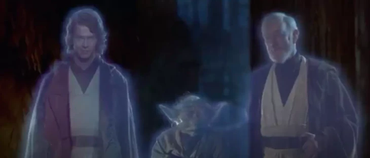 Лукас объяснял, что «метафорически» Энакин умер в молодом возрасте сразу после того, как его поглотила темная сторона и он стал Дартом Вейдером. Поэтому после искупления вины и физической смерти в «Возвращении джедая», его душа вернулась в то состояние, в котором она «остановилась».