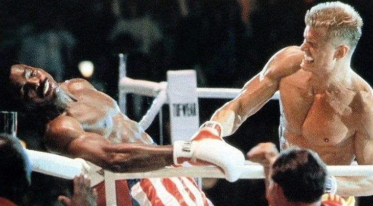 Сам бой – это 15 раундов с привычной для таких фильмов схемой. Сначала у Рокки не получается, но потом вспыхивает перелом: монструозный Драго не справляется с техничным Рокки и даже теряет симпатии в московском зале.