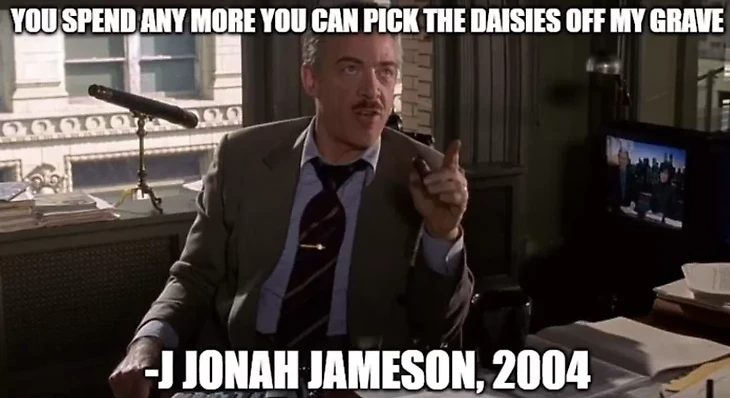 Интервью Джонатана Кимбла Симмонса после выхода третьего Человека-паука с Тоби Магуайром в 2007-м: «Я думаю, что на этом фильм о Человеке-пауке не заканчивается. Что касается моей роли, то я считаю Джеймсона идеальным суперзлодеем. Он только и делает, что пытается нанести удар какой-то удар под дых. Думаю, в четвертой части Джеймсон найдет суперкостюм и подерется с Питером Паркером. Ха-ха, шучу, ничего не знаю об этом. Но однажды я сыграю этого говнюка снова».
