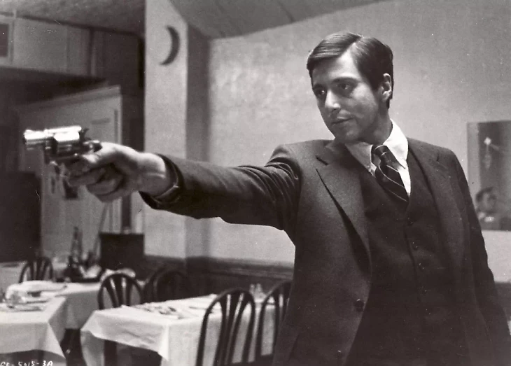 Это честолюбие во мне говорило – хотелось поиграть в крутых парней с пистолетами, пройтись перед камерой в кожаном пальто с зализанными назад волосами. Образ, наверное, под Аль Пачино, но, если уж на то пошло, мода на малиновые пиджаки, которые у нас в 90-х носили, от «Коза Ностры» пошла.