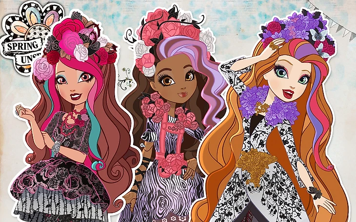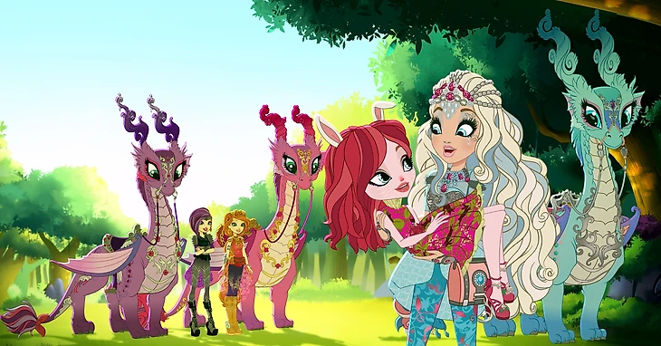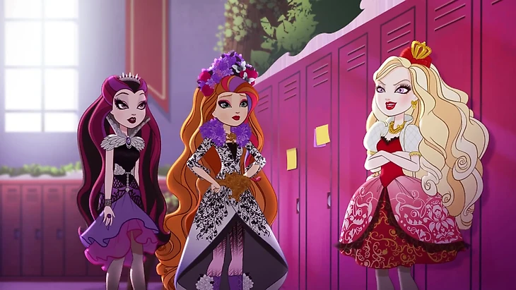 В первом сезоне вы познакомитесь с главными персонажами мультфильма: дочерью Злой королевы Рейвен Квин, дочерью короля Чарминга Дарлинг Чарминг, дочерью Белоснежки Эппл Вайт, дочерью спящей красавицы Брайер Бьюти, Дочерью Красной шапочки и волка-оборотня Сериз Худ и другими персонажами.