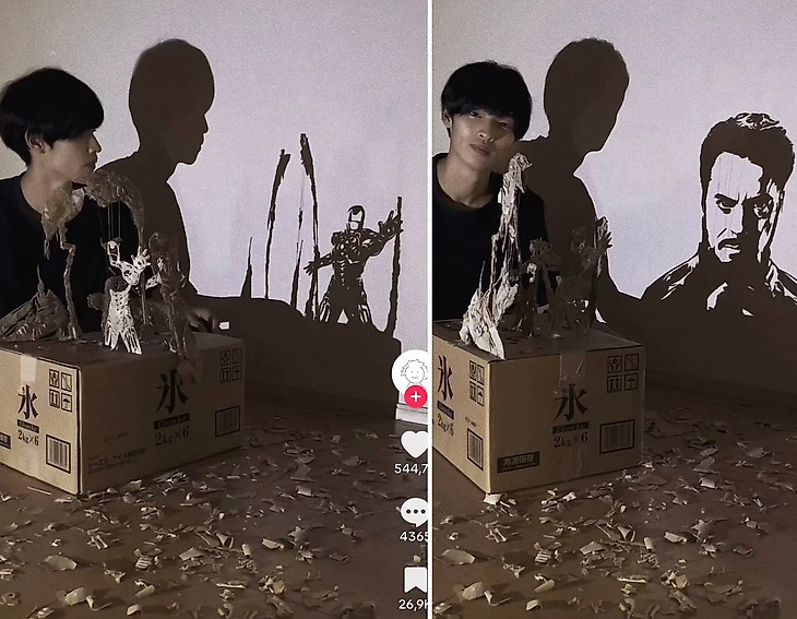 😍 Парень собрал Гарри Поттера c помощью обрывков картона и теней! 30 млн лайков и 272 млн просмотров в TikTok