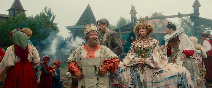 Если знаете больше одной сказки, со вступления начнете закатывать глаза. В кадре появился иностранец? Он кривляется, жеманничает и до обморока боится простого русского Емелю. Царь хочет показать гостю величие Руси? Отправляет подопечного за сказочными вещицами вроде скатерти-самобранки. Герои оказались за границей? Там и воздух хуже, и трава не такая зеленая.