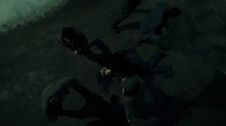 Его товарищ видит это, но так и стоит, не проронив ни слова. В это момент толпа хватает Ералаша и начинает избивать, парень остается стоять в автобусе, а водитель быстро закрывает двери и уезжает.