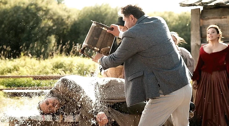 Любопытно, что захватчики – не статисты, а полноценные действующие лица. Они даже устраивают заварушку, напоминающую крутые голливудские блокбастеры. Только представьте сцену, где мажорка Аглая бежит по полю, а вокруг свистят пули, громыхают снаряды, дерутся десятки солдат – вся эта красота снята одним кадром. Еще и на комика-сценариста хорошо потратились: по-другому обилие шуток, от которых смеешься в голос, не объяснить. В итоге «Холопа 2» хочется похвалить за размах, визуал и юмор.