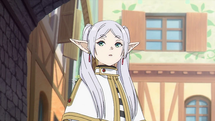 Фрирен (нем. Frieren – «заморозить») – древняя эльфийская чародейка с возрастом более тысячи лет. После нападения на родную деревню обучилась магии у человеческой волшебницы Фламме и долгое время жила отшельницей, пока не вступила в геройский отряд рыцаря Химмеля. Она путешествовала с товарищами 10 лет и победила Короля демонов, но по-другому чувствовала время и часто не понимала спутников. Отправилась в новое путешествие с девушкой Верн, чтобы лучше узнать людей и старых товарищей. Очень флегматичная и отстраненная, но меняется по ходу истории. Коллекционирует волшебные предметы.