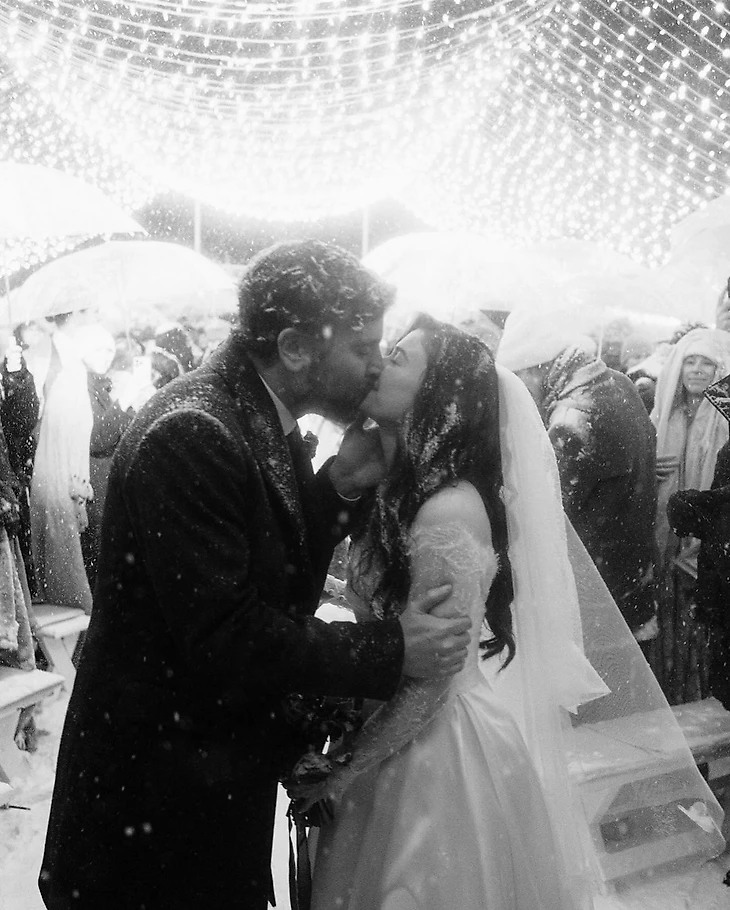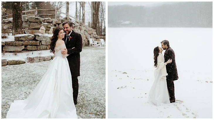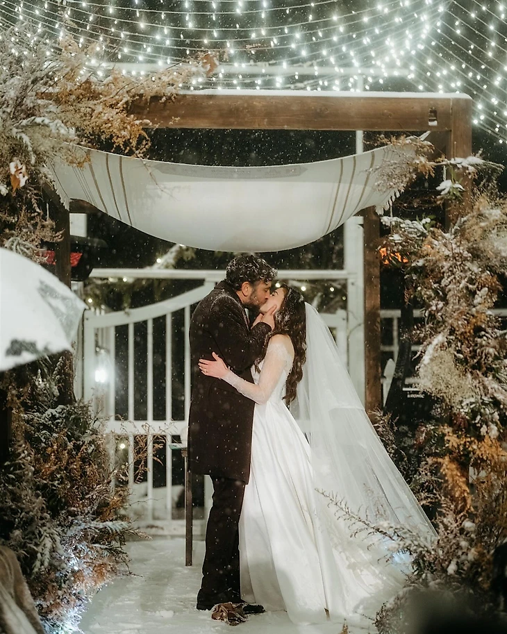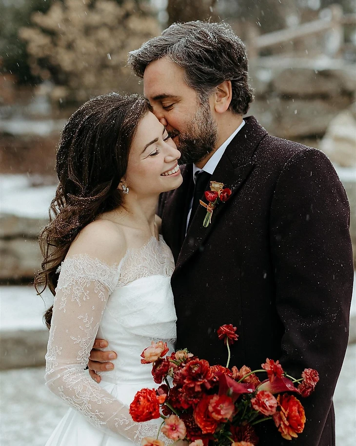 Церемония в день свадьбы проходила на улице. Даже метель, которую метеорологи предсказывали уже несколько дней, не могла помешать. Супруги пошутили, что просчитались и планировали, что сильный снегопад начнется позже. Джош красиво отметил: «Этот снег несет в себе два символа: да, он холодный и вызывает тревогу, но в то же время космический и божественный».