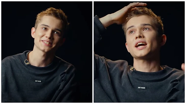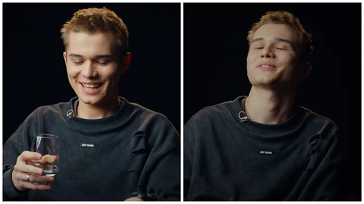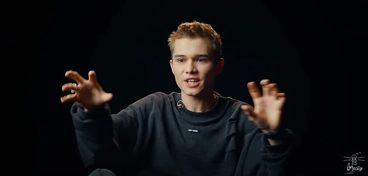 «Ужас. Я помню этот тупой день, когда я впервые сказал о своих чувствах. Это было так пафосно и так тупо! Я ей сказал: «Я тебя люблю». После этого чуть не провалился под землю. Да, было страшно, конечно, признаваться. Потому что было время юношества, когда тебе 15 и существуют всякие тупые правила, когда ты не должен говорить первым, что ты ее любишь. Существовали всякие глупые стратегии пацанов, мол «нет-нет, не надо ей писать, не отвечай, ее нужно промариновать». Просто есть такие тупые правила. Я сейчас общаюсь с Леоном (прим. ред. исполнителем роли Пальто) – и у него тоже есть правило «5 минут не отвечай. Если она написала, то 5 минут пусть ждет».