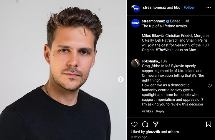 Милош Бикович лишился роли в «Белом лотосе» из-за пророссийской позиции. Против него были интернет и МИД Украины