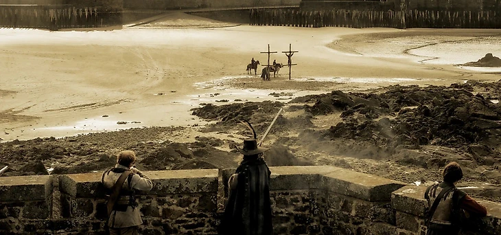 Прошлые экранизации приучили к Франции, где все чисто, красиво и приторно благородно. В новых «Трех мушкетерах» страну показали иначе: на улицах серость и грязь, содержимое ведра выливают прямо из окна, в подворотнях валяются пьянчуги. Но когда герои покидают городские стены и скачут вдоль утеса, от видов захватывает дух.