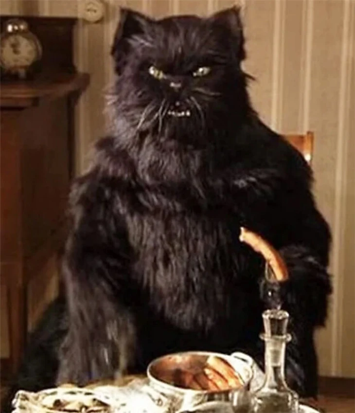 Бегемот получился самой сложной (и дорогой) работой в сериале. В человеческом образе его сыграл Александр Баширов, в шерстяном костюме находился актер-лилипут Вано Миранян, а озвучил его Сергей Фурман. А в моменты, когда появлялся обычный кот, его играл пушистый актер из театра Юрия Куклачева.