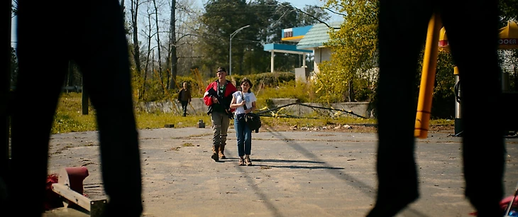 Гарленда интересует не крушение американской империи, не почему люди вдруг начали убивать друг друга, а то, как война влияет на людей, какие следы она оставляет на их телах и душах. Поэтому и героев он сделал журналистами, чтобы наблюдали и фотографировали, но не вмешивались. Мирная, тихая субурбия – щелк; смеющиеся люди в лагере для беженцев – щелк; сгоревший вертолет на парковке около торгового центра – щелк; солдат, пытающийся остановить кровь – щелк; ополченец, позирующий около заживо повешенных «мародеров», с одним из которых он ходил в школу – щелк.