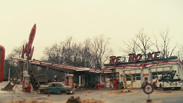В нескольких сценах нам показали заправку «Красная ракета», на которой главный герой Falliut 4 познакомился с псиной. Авторы уделили внимание внешнему сходству, а также собаке, которая ждала на ней гуля.