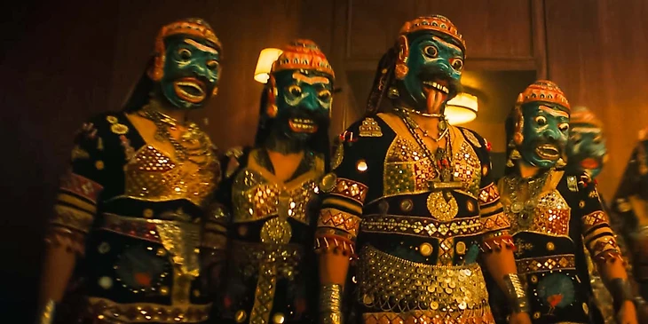 На ринг главный герой всегда выходит в маске обезьяны, в этом кроется символизм. Во флешбэках из детства мы видим, как мать главного героя рассказывает ему сказку про индуистского бога Ханумана.