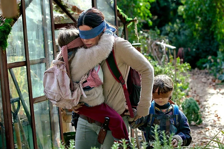 Еще один фильм на тематику постапокалипсиса, но уже не социальный триллер, а полноценный хоррор. Мэлори (Сандра Буллок) и ее дети с завязанными глазами живут в мире, где из-за загадочных сущностей люди совершают самоубийства.