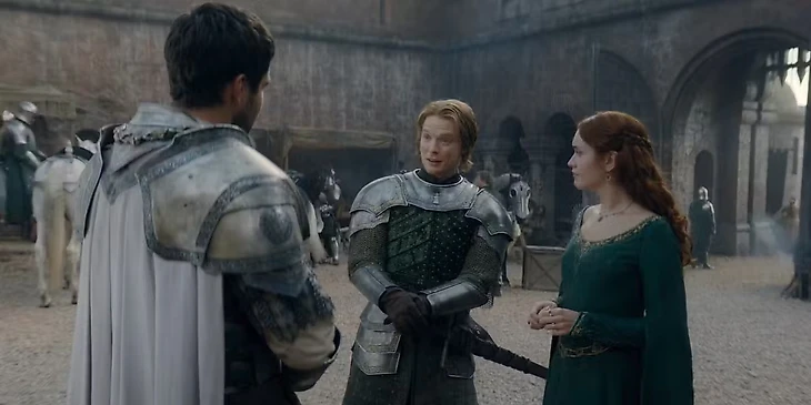 В сериале «Дом Дракона» 2 сезон, 3 эпизод, мы наблюдаем значительные отклонения от книжного канона Джорджа Р. Р. Мартина «Пламя и кровь» в отношении персонажа Гвейна Хайтауэра. В книге Гвейн, заместитель командующего Городской стражи, играет роль «крота» своего отца Отто Хайтауэра, следя за лояльностью сира Лютора Ларджента королю Эйгону II. Однако в сериале Гвейн предстает не Золотым Плащом, а активным участником военного совета Эйгона и командиром под началом сира Кристона Коля. Эта перемена роли, вероятно, связана с необходимостью создать более яркого и динамичного персонажа, способного взаимодействовать с Кристоном Колем на поле боя и вносить вклад в развитие сюжета.