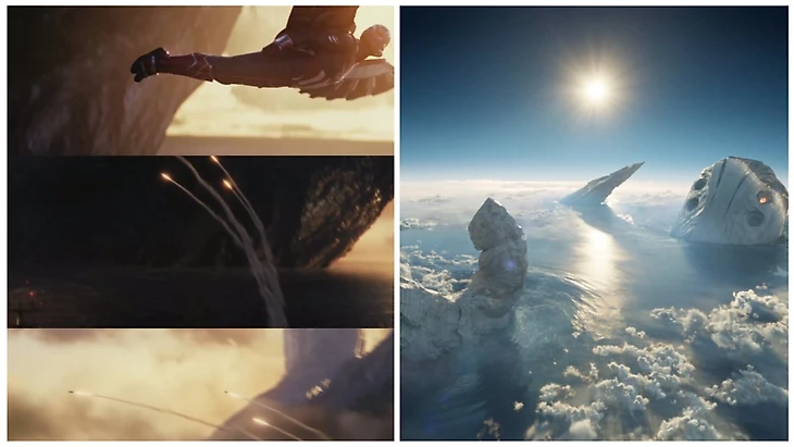 Marvel медленно, но верно готовит нас к появлению вселенной Людей Икс. В трейлере есть момент, когда Капитан Америка в полете уворачивается от ракет на фоне Тиамута, целестиала, чье семя было посеяно на Земле. Именно он должен был выкарабкаться из недр планеты и разрушить ее, но был повержен Вечными в одноименном фильме. Целестиал так и остался торчать на поверхности.