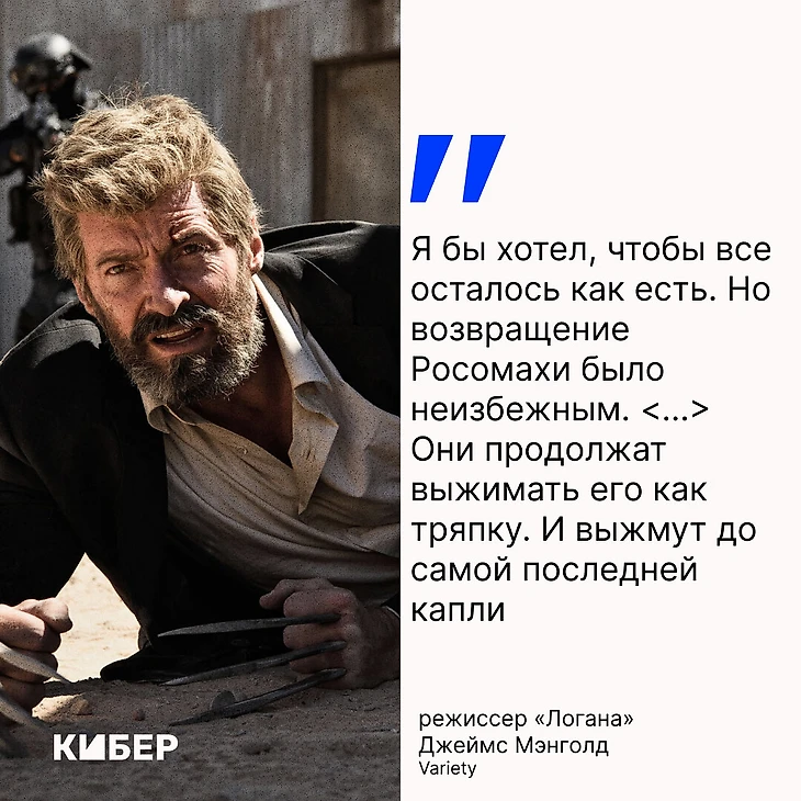 Новость разочаровала Джеймса Мэнголда. В интервью изданию Variety режиссер резко высказался о ненасытности Marvel: «Я бы хотел, чтобы все осталось как есть. Но возвращение Росомахи было неизбежным. <...> Они продолжат выжимать его как тряпку. И выжмут до самой последней капли».