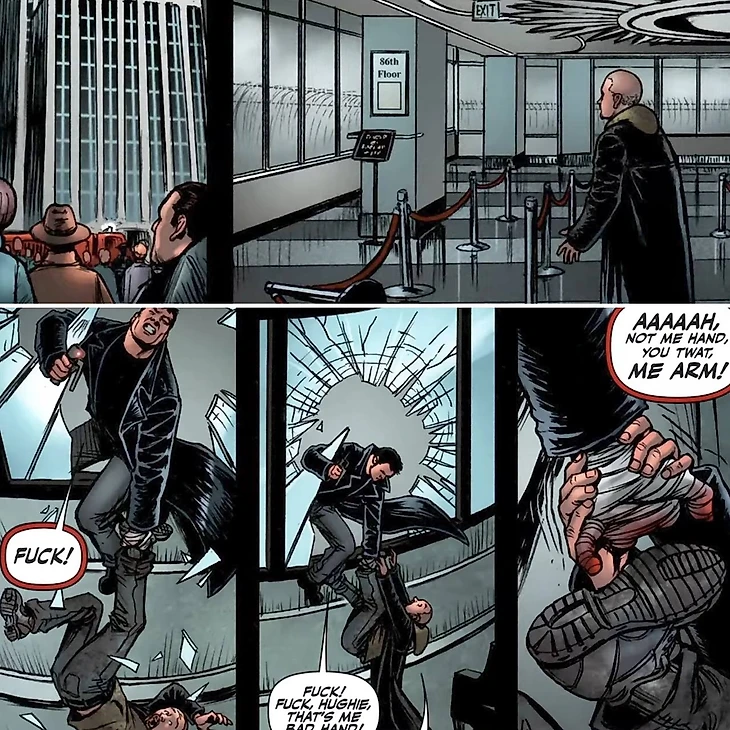 Таким образом, Хьюи – единственный выживший член «Пацанов». Он понимает, что Бутчер воплотит план на крыше Эмпайр-стейт-билдинг, чтобы с большой высоты насладиться новым миром – без суперов. Хьюи отправляется туда; завязывается драка, и оба выпадают из окна.