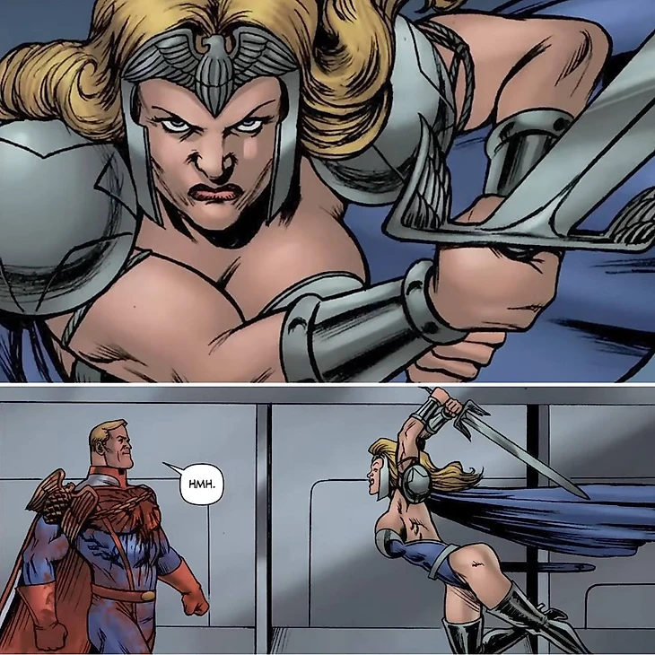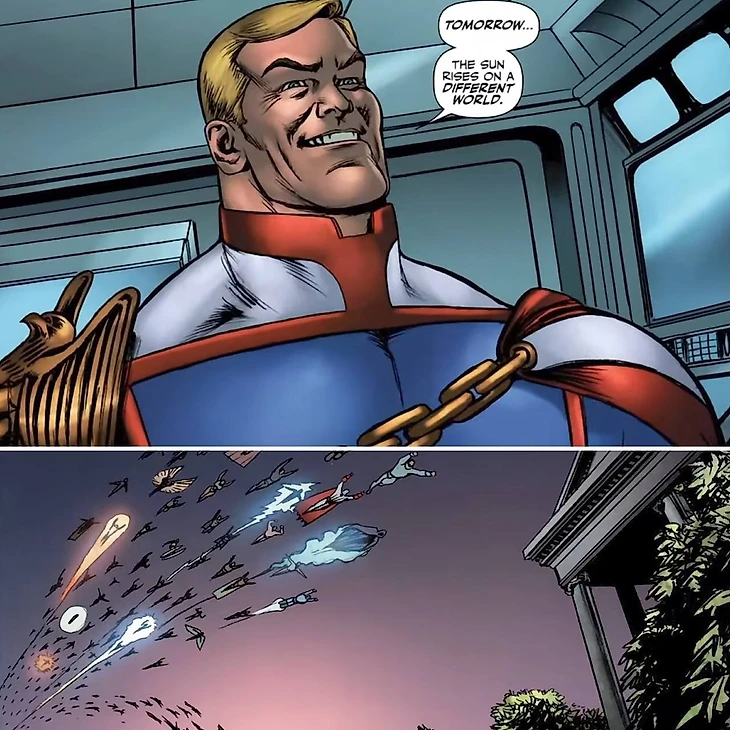 Кульминация в комиксе происходит в 60-м номере (всего их 72, не считая спецвыпусков). Из-за глупого несчастного случая гибнет президент США, его место занимает сторонник «Воут Американ» (Vought-American). Кажется, теперь ничто не помешает корпорации добиться безграничной власти. Как бы не так!