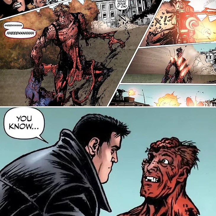На выходе его расстреливают американские военные! Бутчер подходит к тяжело раненому Нуару и добивает его. Оставшиеся суперы или уже ликвидированы, или скрылись.