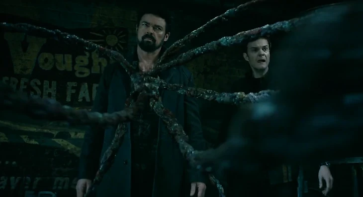 Отметим, что синие щупальцы – это не первая суперсила, которая проявилась у Бутчера. Когда тот принимал сыворотку Ви в третьем сезоне, то она также наделяла его лазерным зрением и суперсилой, как у Хоумлендера.