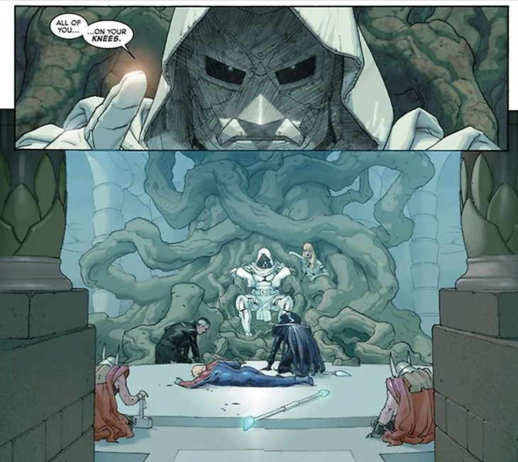 Чтобы вы еще лучше понимали его опасность: по комиксам Доктор Дум убивал супергероев и злодеев пачками ради своей цели. Например, Бог-Император Дум вырвал скелет Таноса из его тела без каких-либо усилий, а затем с легкостью прикончил Доктора Стрэнджа, с которым он спас вселенную и стал близким другом.