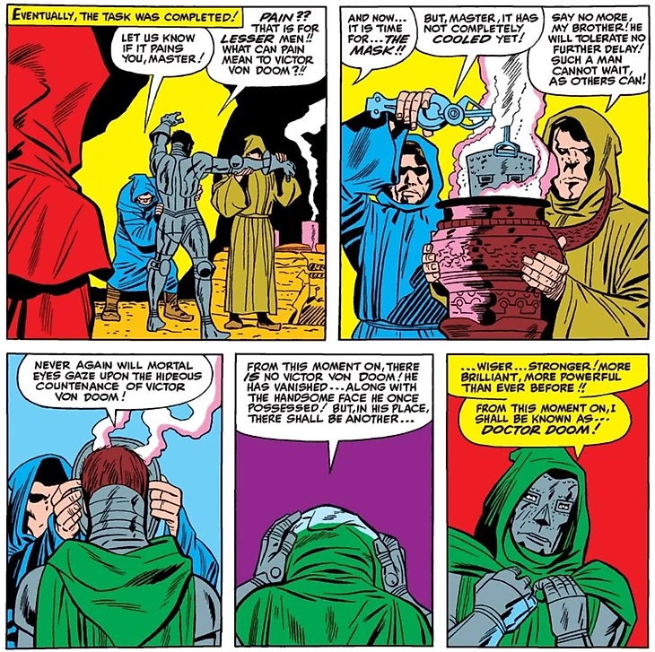 Как бы то ни было, Доктор Дум – это до крайности эгоистичный злодей. Он прячется от мира внутри доспехов. Он объединяет самые передовые технологии и самые темные заклинания, чтобы сделать себя богом среди людей. Он – извращенная инверсия всего, за что выступает Железный человек. Там, где Железный человек был спасителем MCU, Дум – его величайший кошмар.