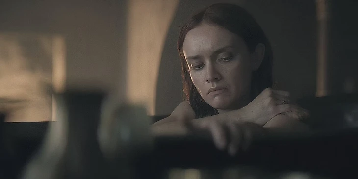 Именно в этот медитативный момент одиночества, единения с миром, наслаждения своим телом линия развития Алисенты добирается до кульминации. Зрителю наконец являют глубину характера королевы, позволяя разглядеть за ее холодным фасадом безразличия и эгоцентричности прекрасную, но уставшую и подавленную женщину, которая всю жизнь рвется к недостижимой свободе.