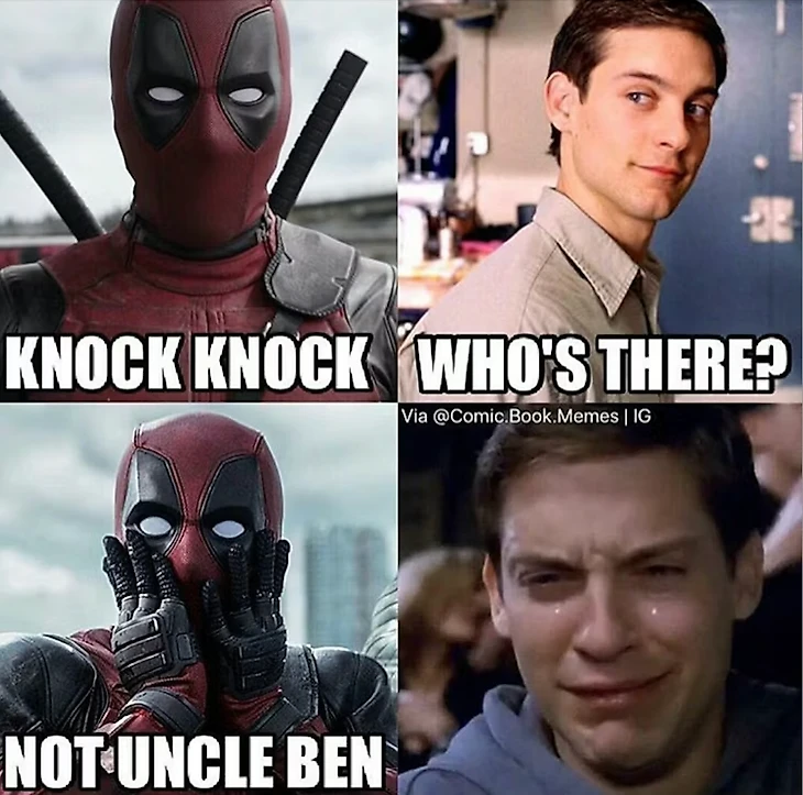 Смерть дяди Бена – это трагический момент в жизни юного Питера Паркера, получившего невероятные способности после укуса радиоактивного паука. Опьяненный силой, он сначала стремится к личной выгоде, но роковая ошибка приводит к ужасающим последствиям. Однажды, позволив мелкому воришке уйти, Питер косвенно становится виновником смерти своего любимого дяди. Так что шутка про «дядюшку Бена» – юмор чернее некуда, но вполне в духе Дэдпула.