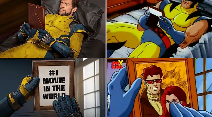 Хью Джекман не упустил возможности пошутить над успехом «Дэдпула 3», опубликовав в своем Instagram забавный пост, отсылающий к знаменитому мему с Росомахой. На фото актер воссоздает сцену из мультсериала «Люди Икс», где Логан грустно смотрит на фотографию Циклопа и Джин Грей. Однако, вместо снимка влюбленной пары, в руках у Джекмана рамка с надписью «Фильм №1 в мире».