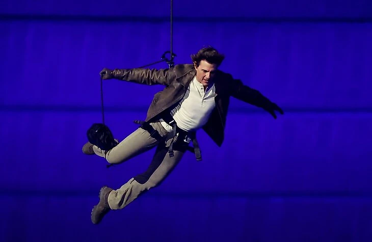 Том Круз на закрытии Олимпиады – 💥. Прыжок с крыши, отсылки к «Драйву» и Лане Дель Рей