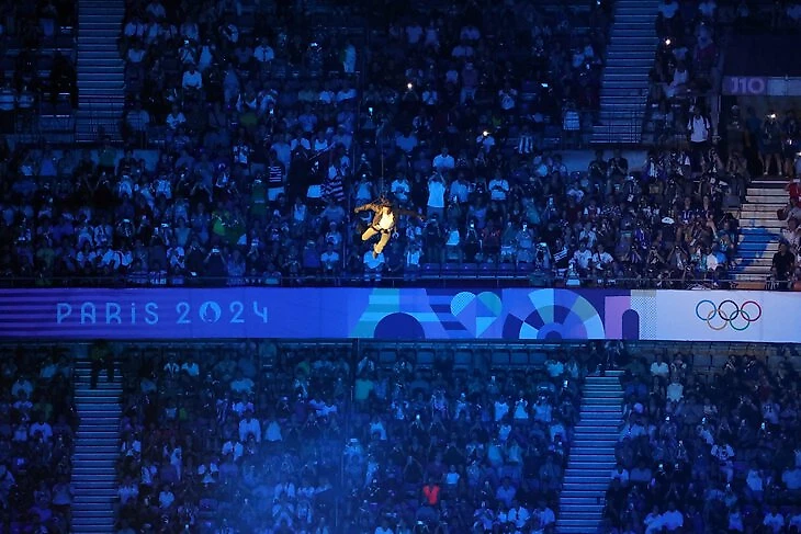 Поприветствовав спортсменов, он взял флаг из рук семикратной олимпийской чемпионки Симоны Байлз. И, не сдерживая счастливой улыбки, изящно умчался за пределы арены на мотоцикле. А церемония переместилась в солнечный Лос-Анджелес, где зрителей уже ждали выступления Red Hot Chili Peppers, Билли Айлиш, Снуп Догга и Dr. Dre.
