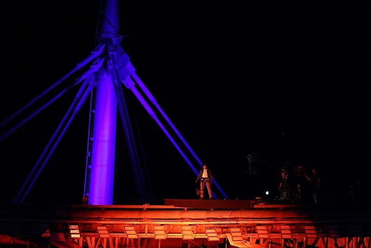 Но именно Том Круз задал церемонии голливудский размах. Во время снятия флага с флагштока камера взмыла вверх, прожекторы направились к крыше и подсветили главный сюрприз церемонии. Сердце замерло. Том Круз сделал культовый трюк: спустился с крыши по тросам, напомнив зрителям о зрелищной франшизе «Миссия невыполнима» и о мужестве голливудских каскадеров.