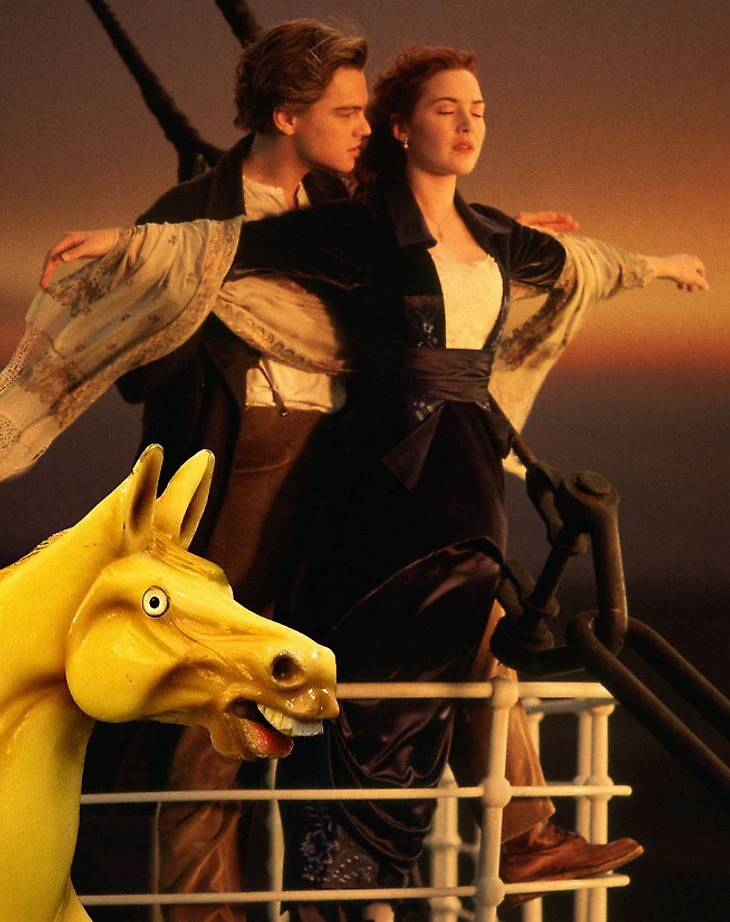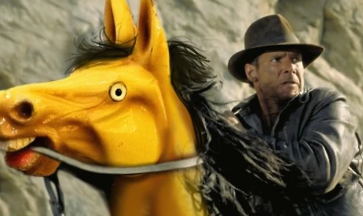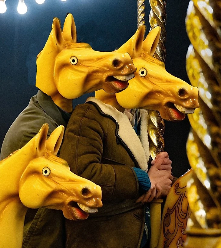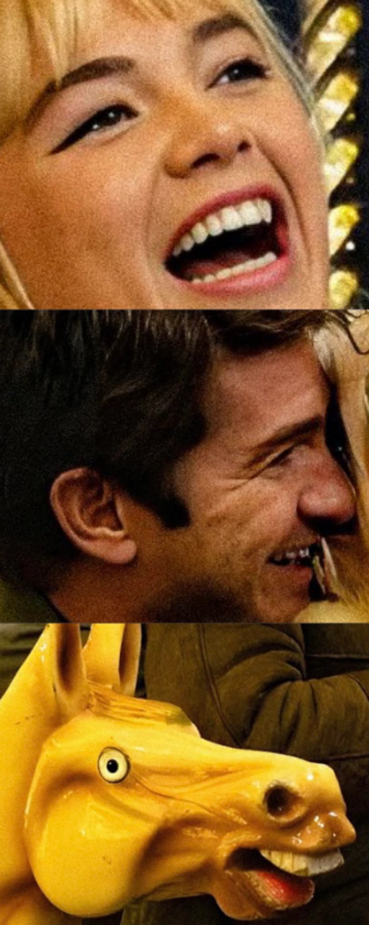 В середине августа в соцсетях появился первый промо-кадр предстоящей романтической комедии Пью и Гарфилда. На изображении пара мило проводит время на карусели, но потом вы видите ЭТУ ЛОШАДЬ В ЛЕВОМ НИЖНЕМ УГЛУ.