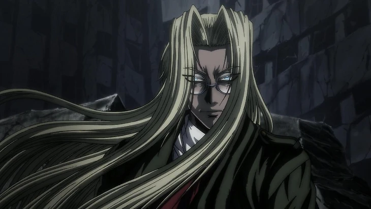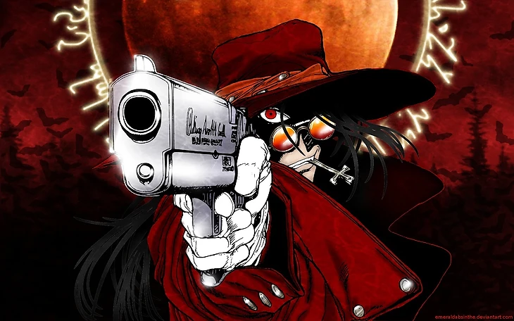 Главный протагонист манги и аниме, могущественный вампир, который по совместительству является одним из сильнейших членов организации «Хеллсинг», из-за чего его можно назвать «козырем» организации. После того как был побежден Абрахамом ван Хеллсингом, был вынужден присягнуть на служение людям.